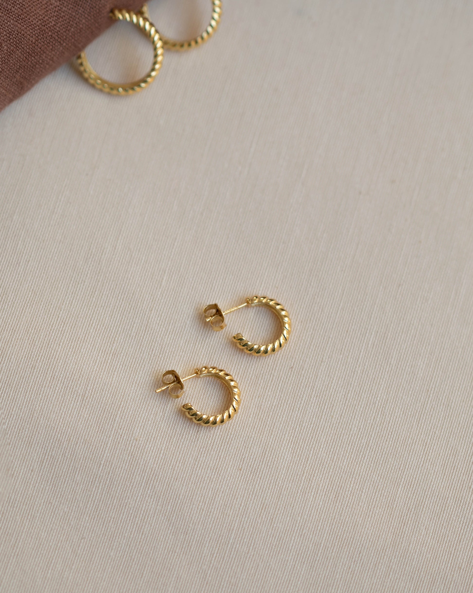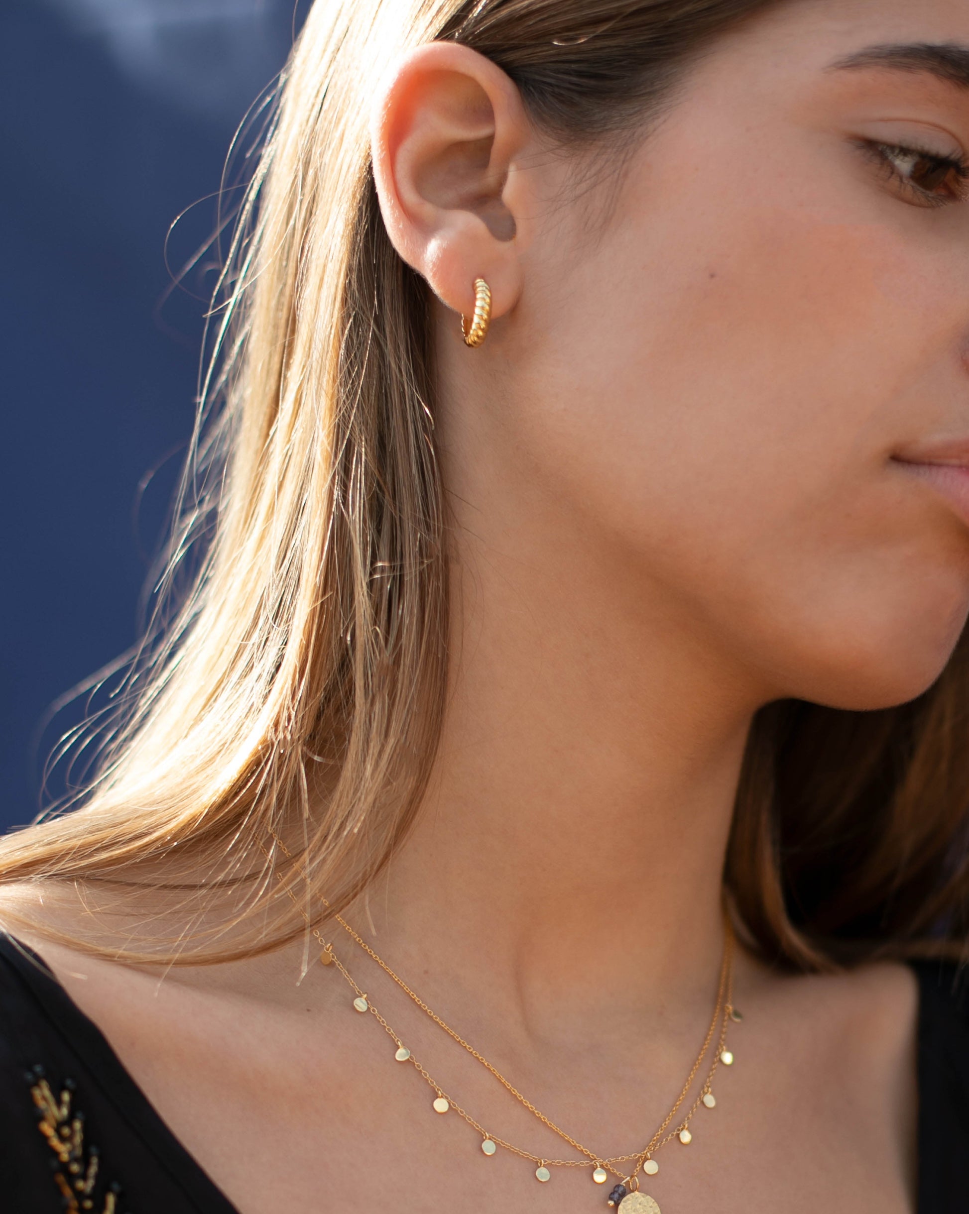 Möt FRANCES, våra stiliga statement-örhängen. Dessa vardagsringar har skapats med en unik flätad finish för att lyfta dina tidlösa looks.