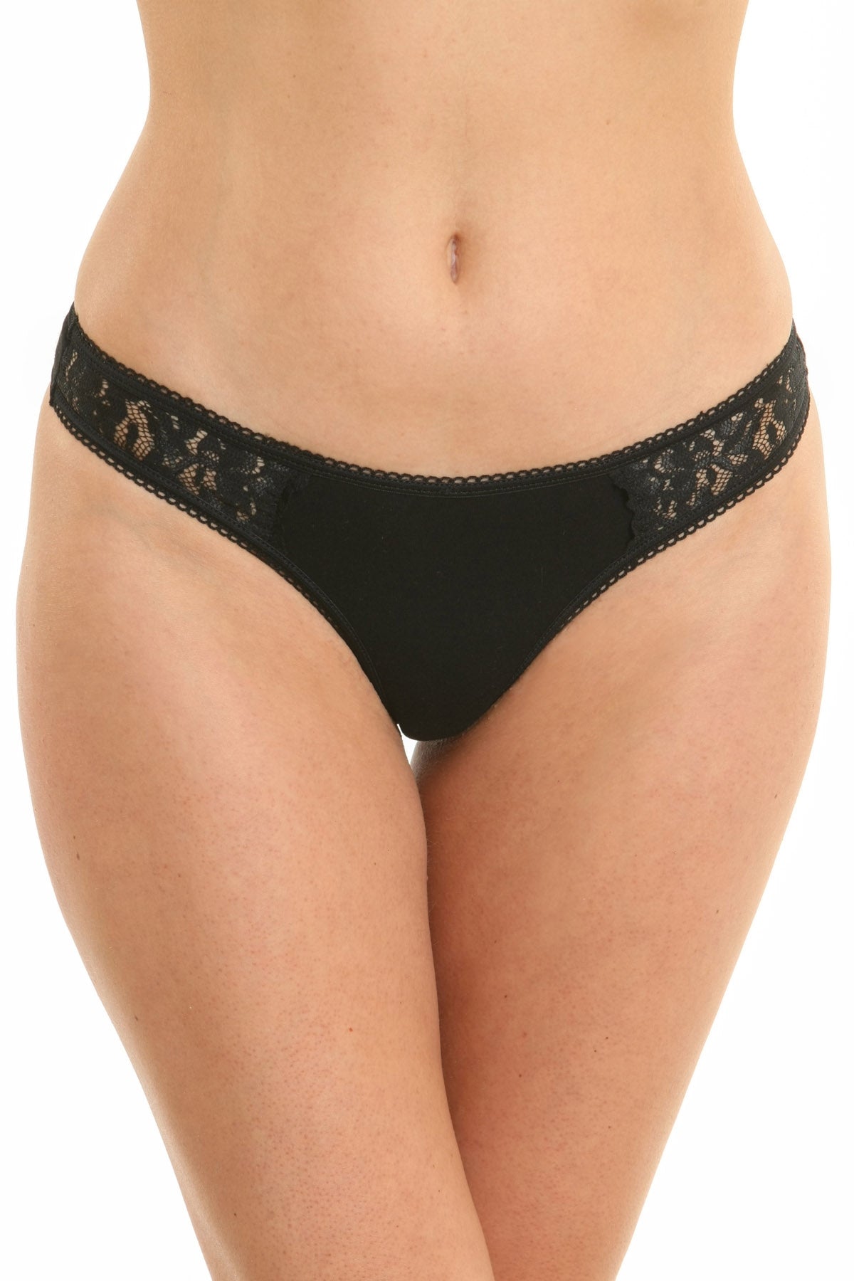 Chiloti tanga i bomull och spets Aida S0838 svart