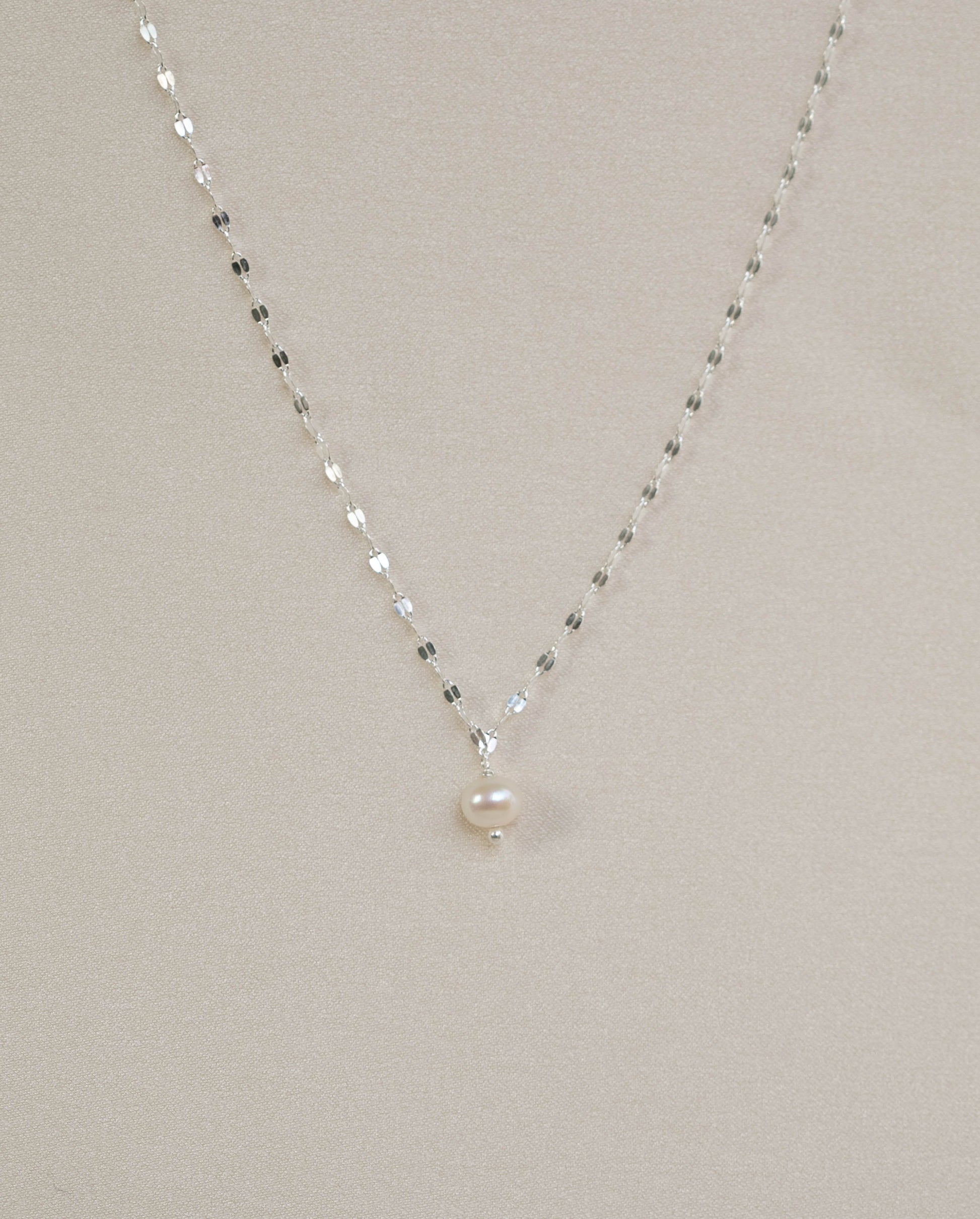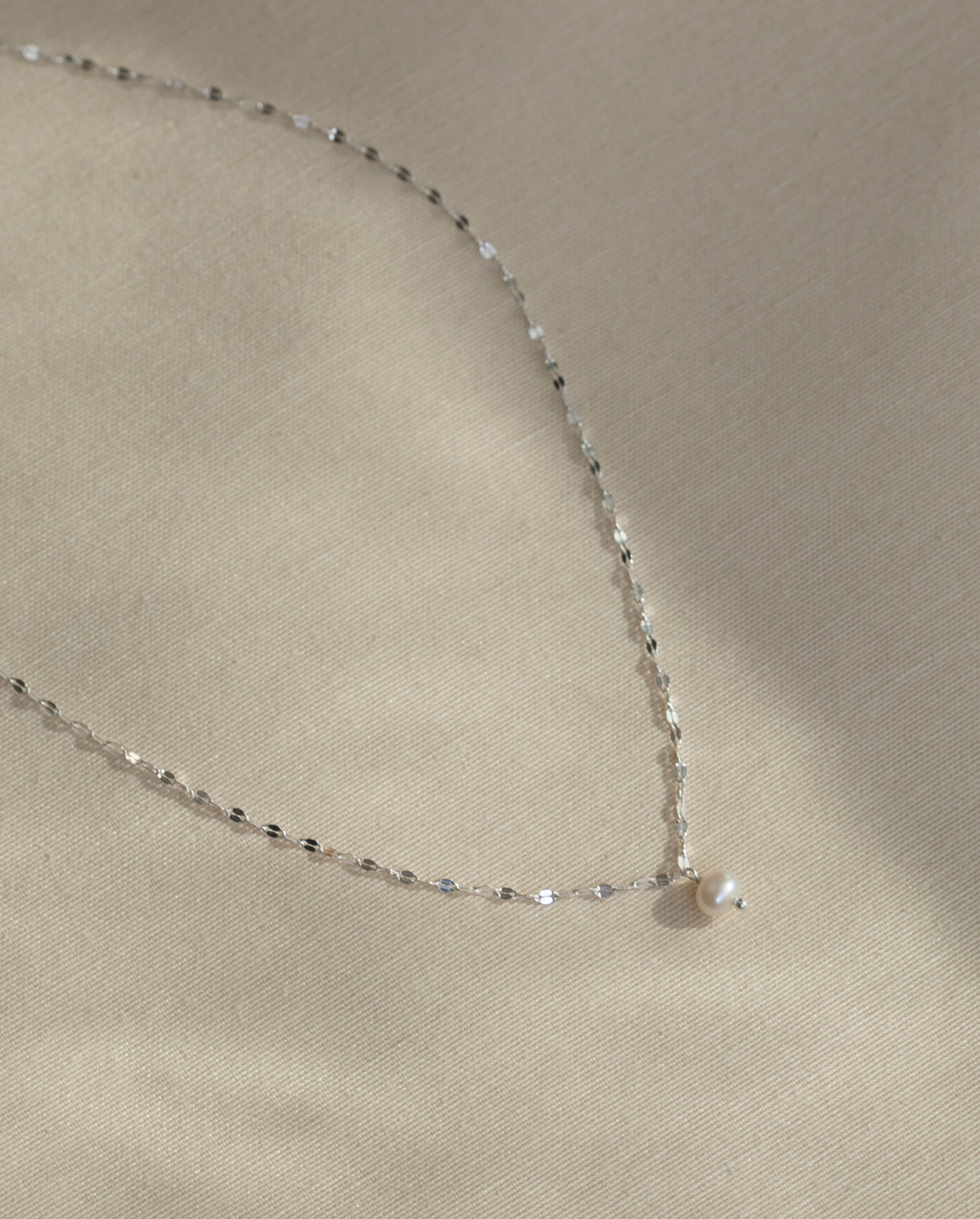 DALIA är ett fint, vridet, minimalistiskt halsband gjort av 925 silver och dekorerat med en naturlig pärla. Ett mångsidigt och feminint smycke som du aldrig kommer att vilja ta av dig. Pärlor noggrant utvalda.