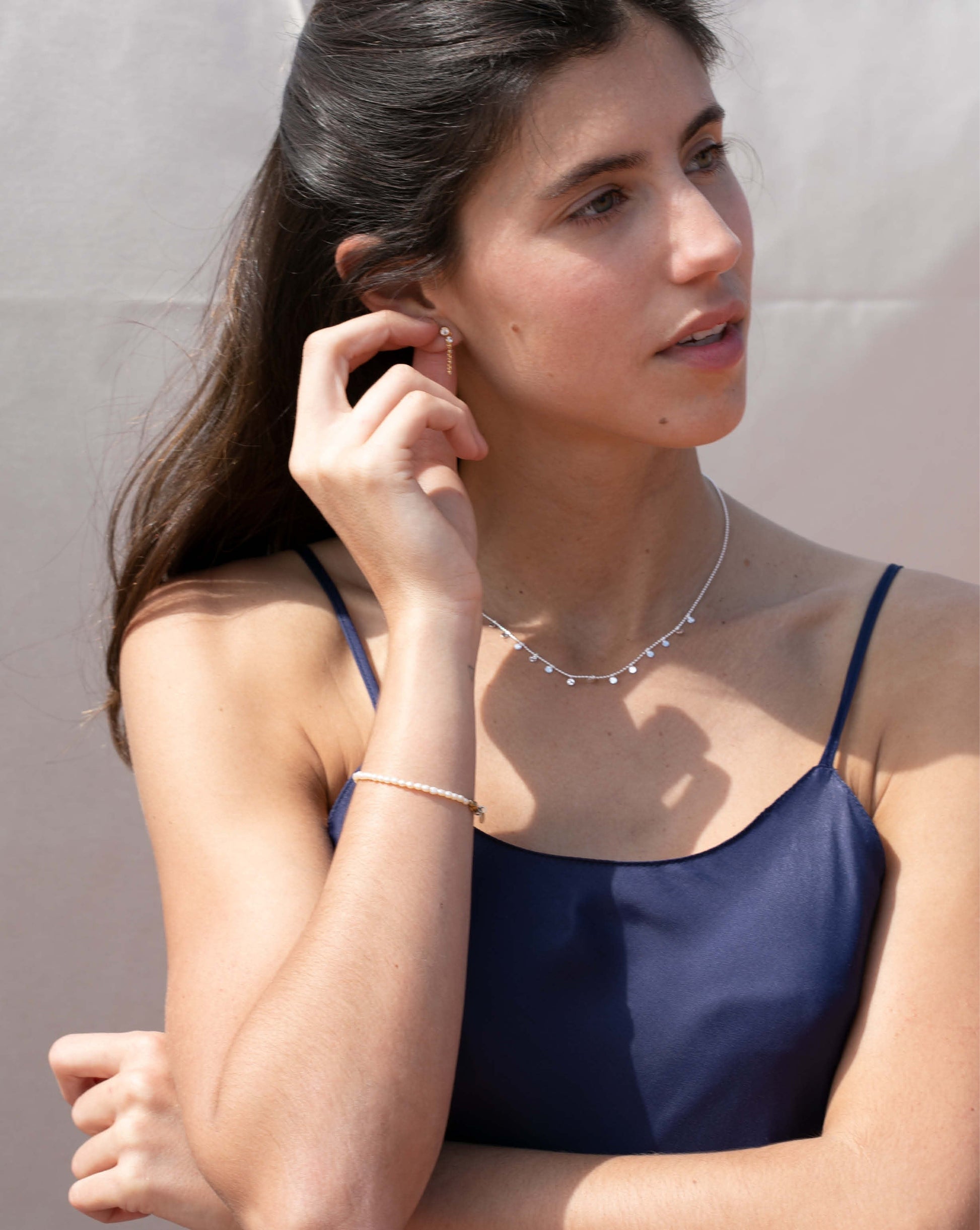 SIENNA är ett enkelt men attraktivt halsband. Ett delikat och elegant stycke, med små platta droppar på ett fint kedja med kulor.