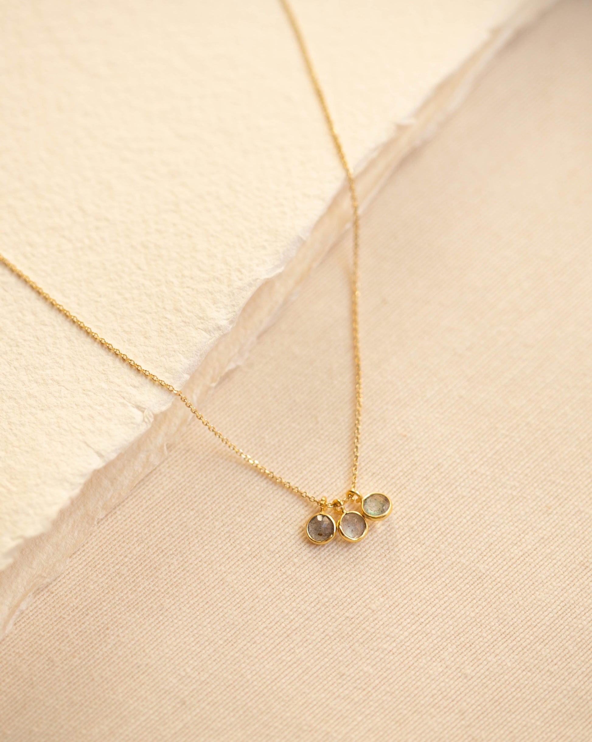 Vi presenterar TROIS. Ett fint halsband med oval kedja i guld, detaljerat med 3 runda månstenar. En speciell, tidlös och vacker bit att bära ensam eller i lager med dina andra favoritskatter. Noggrant utvalda ädelstenar.