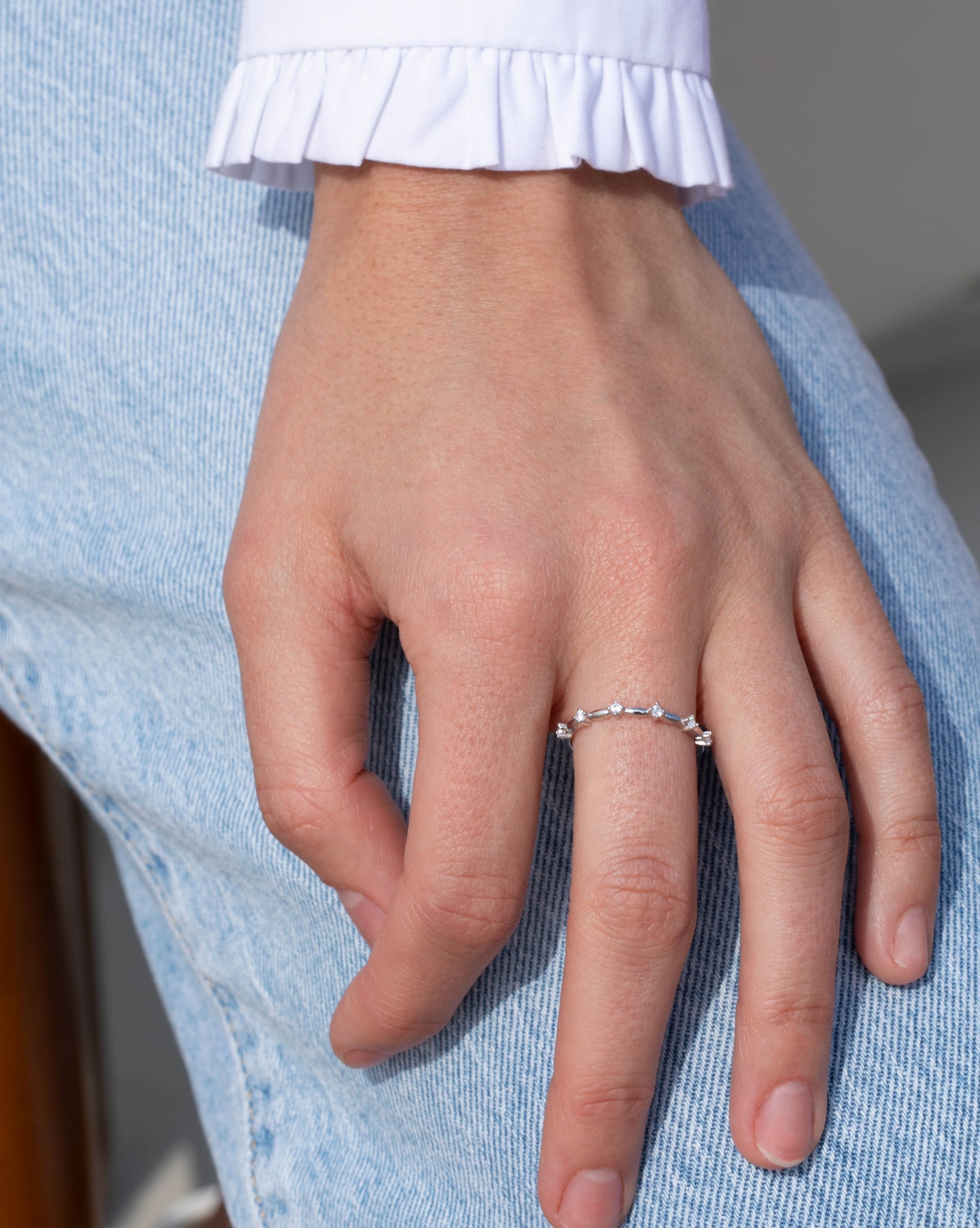 Möt DARIA, en elegant och tidlös ring, prydd med sex glänsande kubiska zirkoner. Designad för att bäras ensam eller kombineras med andra ringar från vår kollektion. Ett smycke som du kan bära varje dag och som du inte vill ta av.