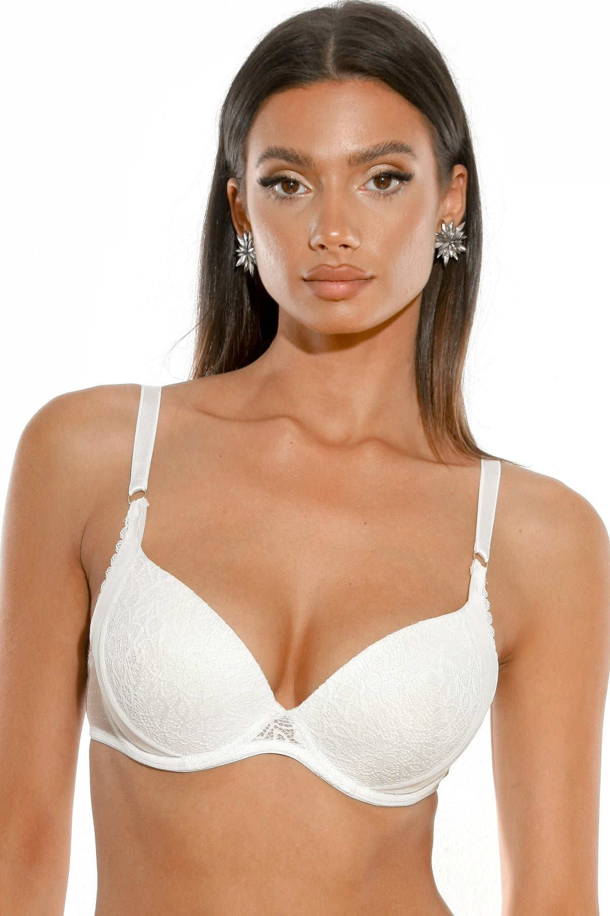 Klassisk BH med mjuk, djup urringning ALBA, tillverkad av fin spets kombinerad med tull, erbjuder en elegant och raffinerad look. En feminin modell som förenar naturligt stöd med materialens ömhet, perfekt för vardagskläder.