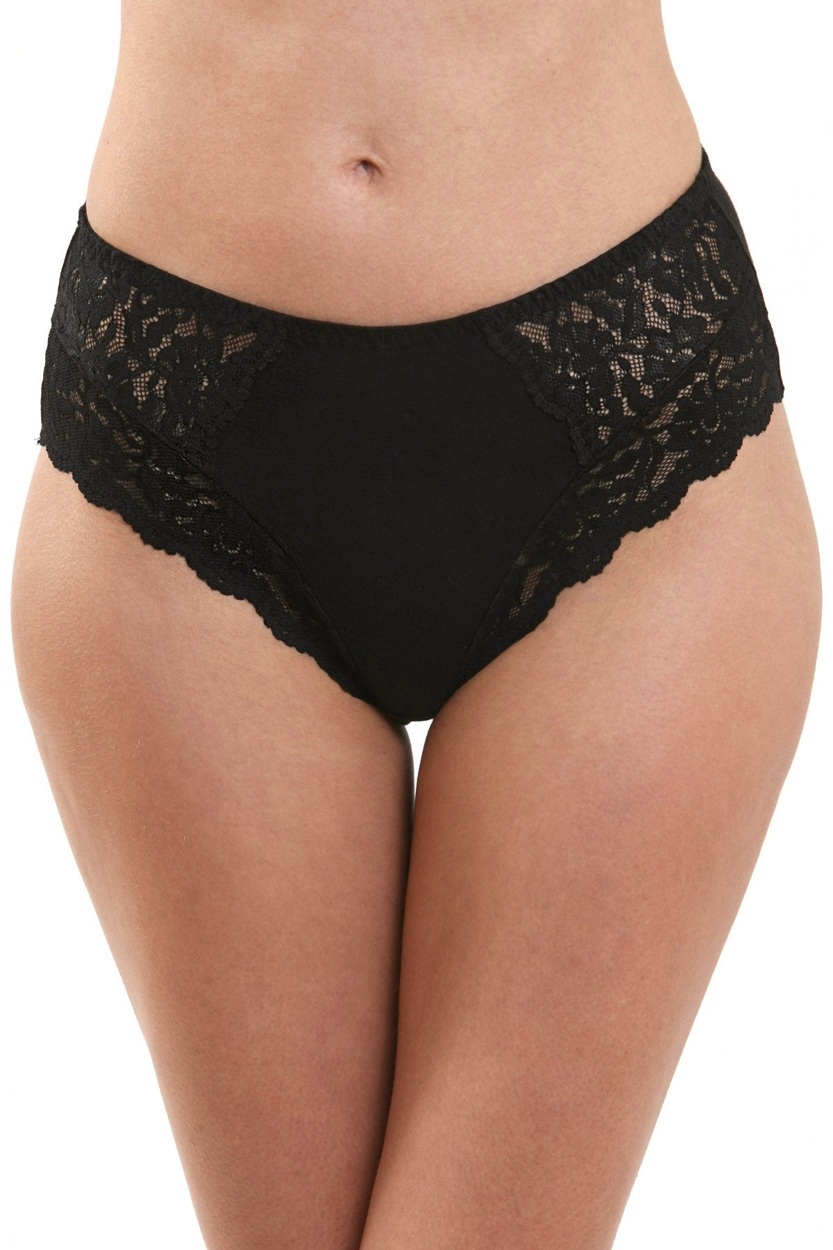 Klassiska svarta trosor i bomull och spets FIONA S1507