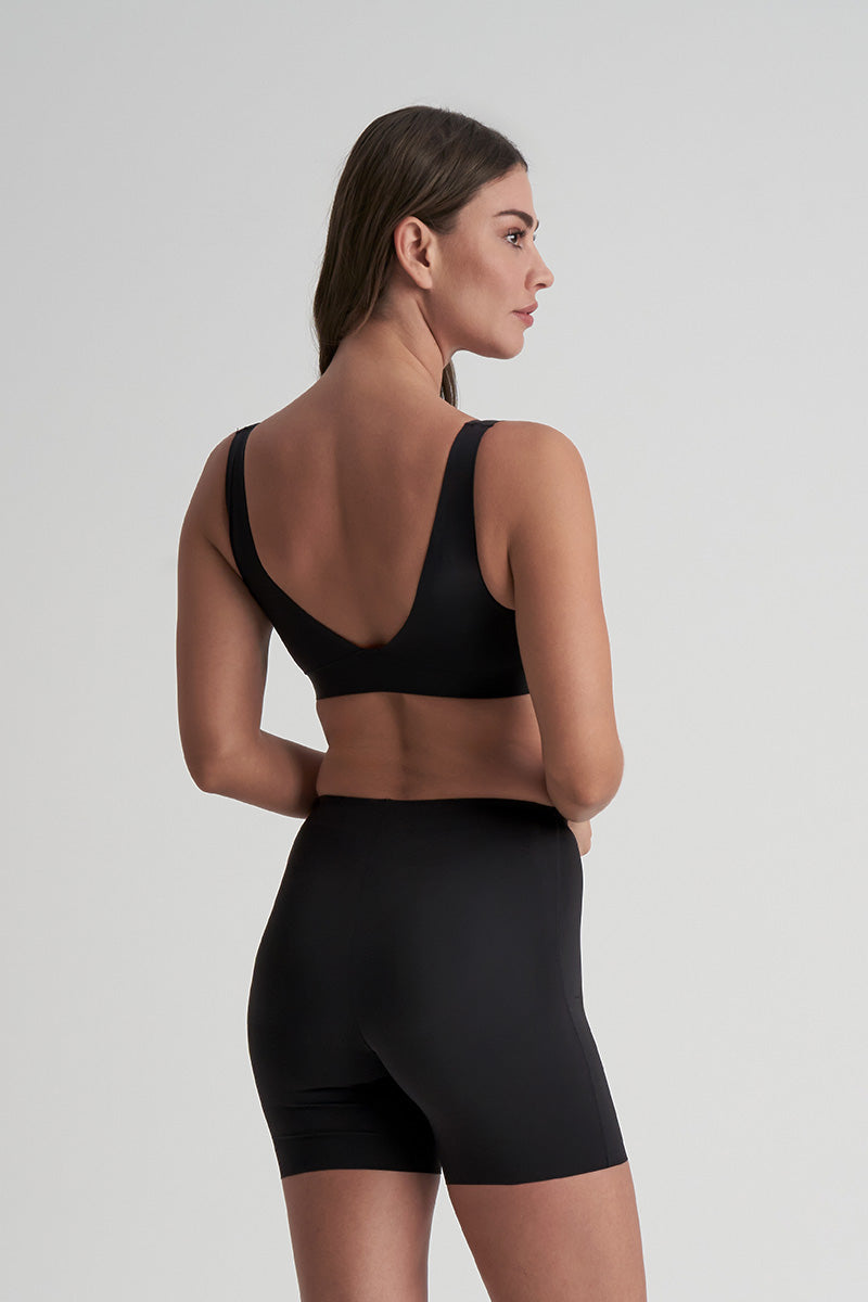 Bye Bra modelleringstrosor med avtagbara svampar ger volym och form omedelbart i rumpområdet, tack vare den integrerade push-up-effekten. Tillverkad av återvunnen microfiber, är den osynlig under kläder och perfekt för en feminin och slät look.