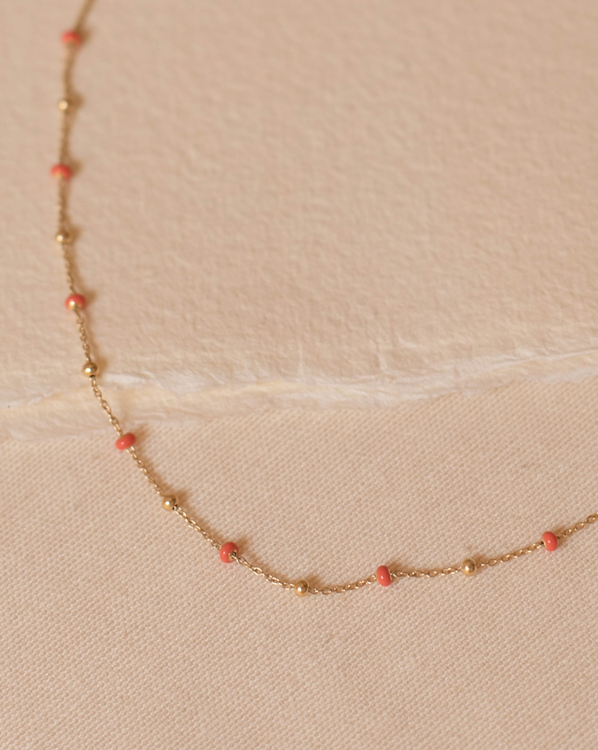 Möt den senaste tillskottet i LOULOU-familjen! Detta armband, gjort med ett fint guldchain, prytt med korall-emalj, är en elegant men lekfull pjäs. Personifierad med vår logotyp på låset. Kombinera det med LOULOU-halsbandet!