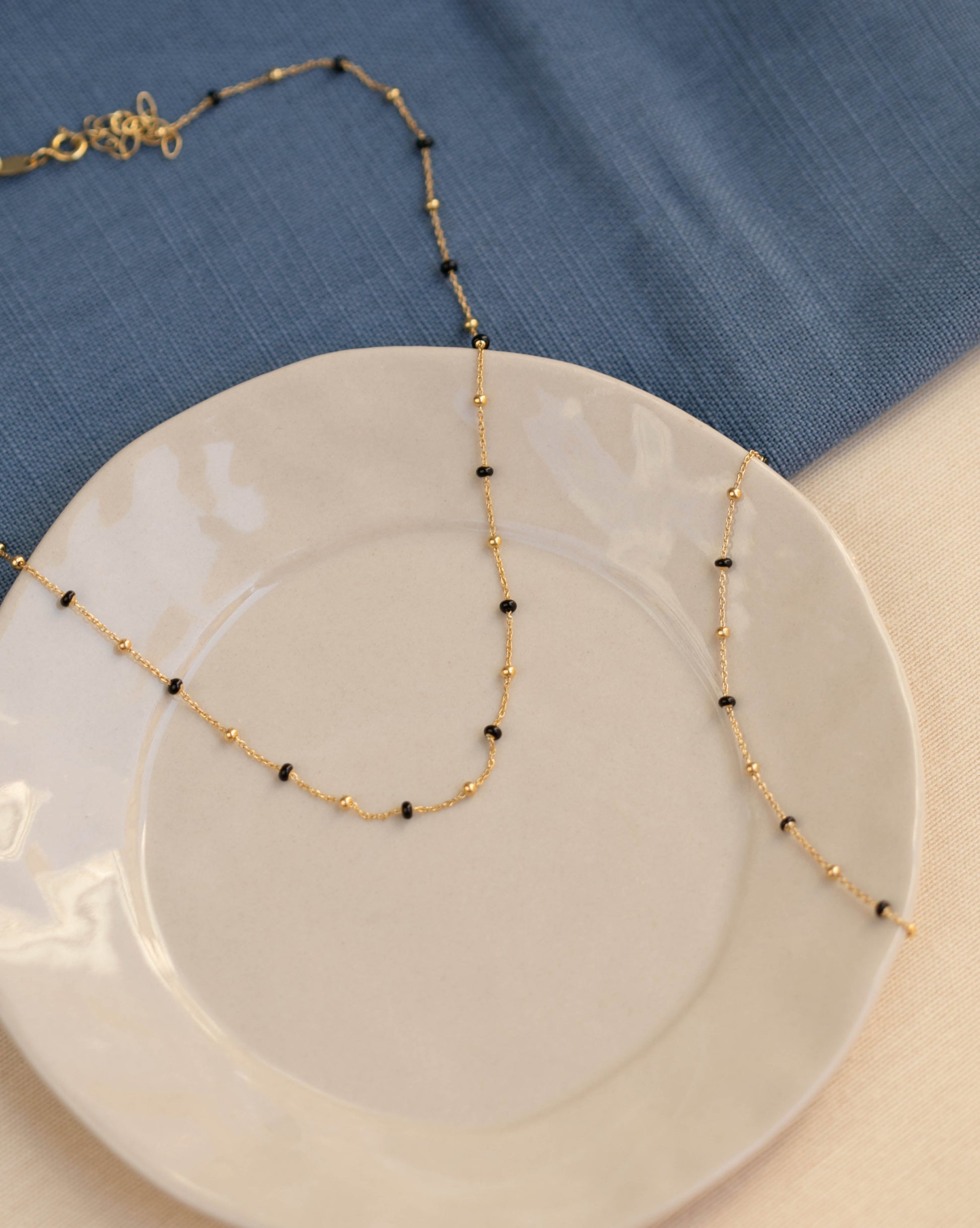 Möt den senaste tillskottet i LOULOU-familjen! Detta armband, gjort med en fin kedja av guld och dekorerat med svart emalj, är en elegant och lekfull detalj. Personifierat med vår logotyp på låset. Kombinera det med LOULOU-halsbandet!