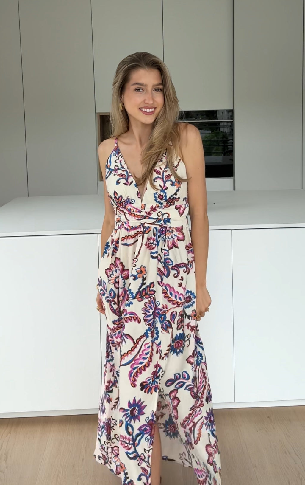 MAXI KLÄNNING MED ROSA BLUMMAR