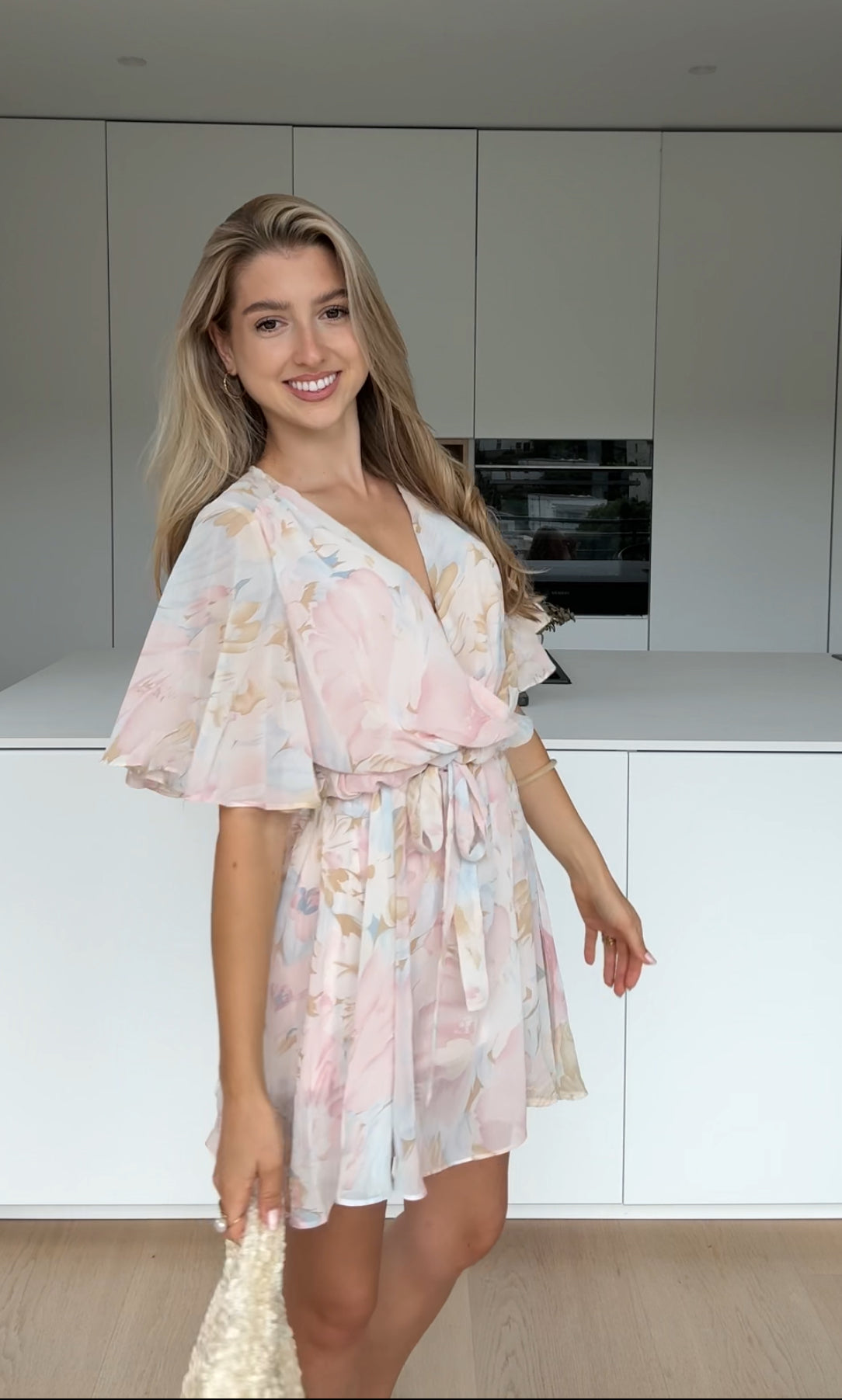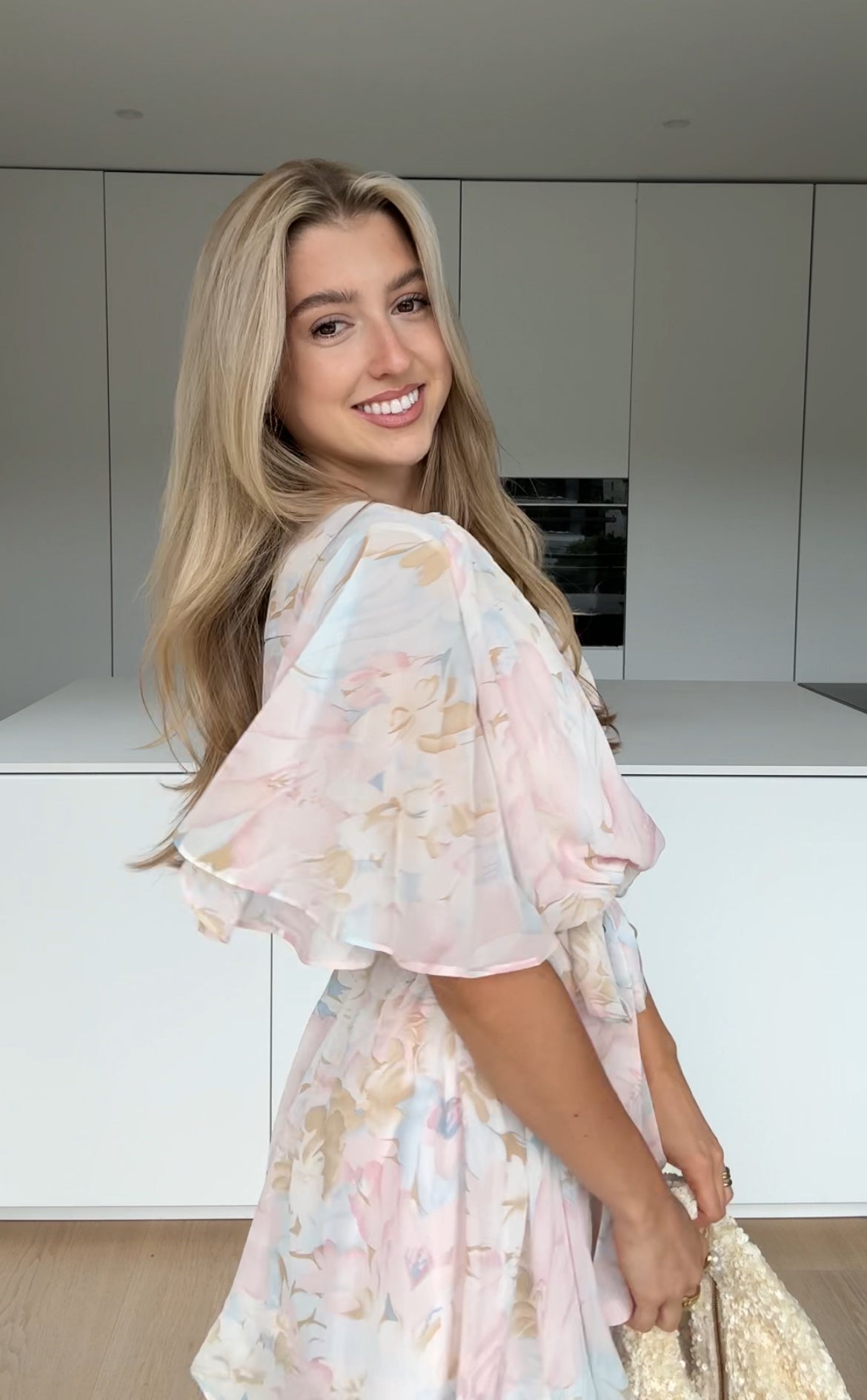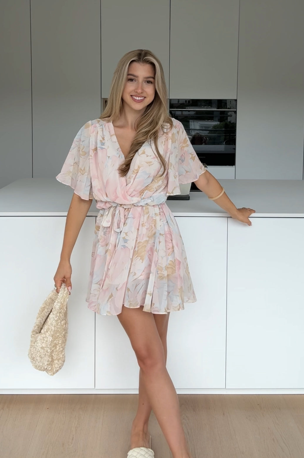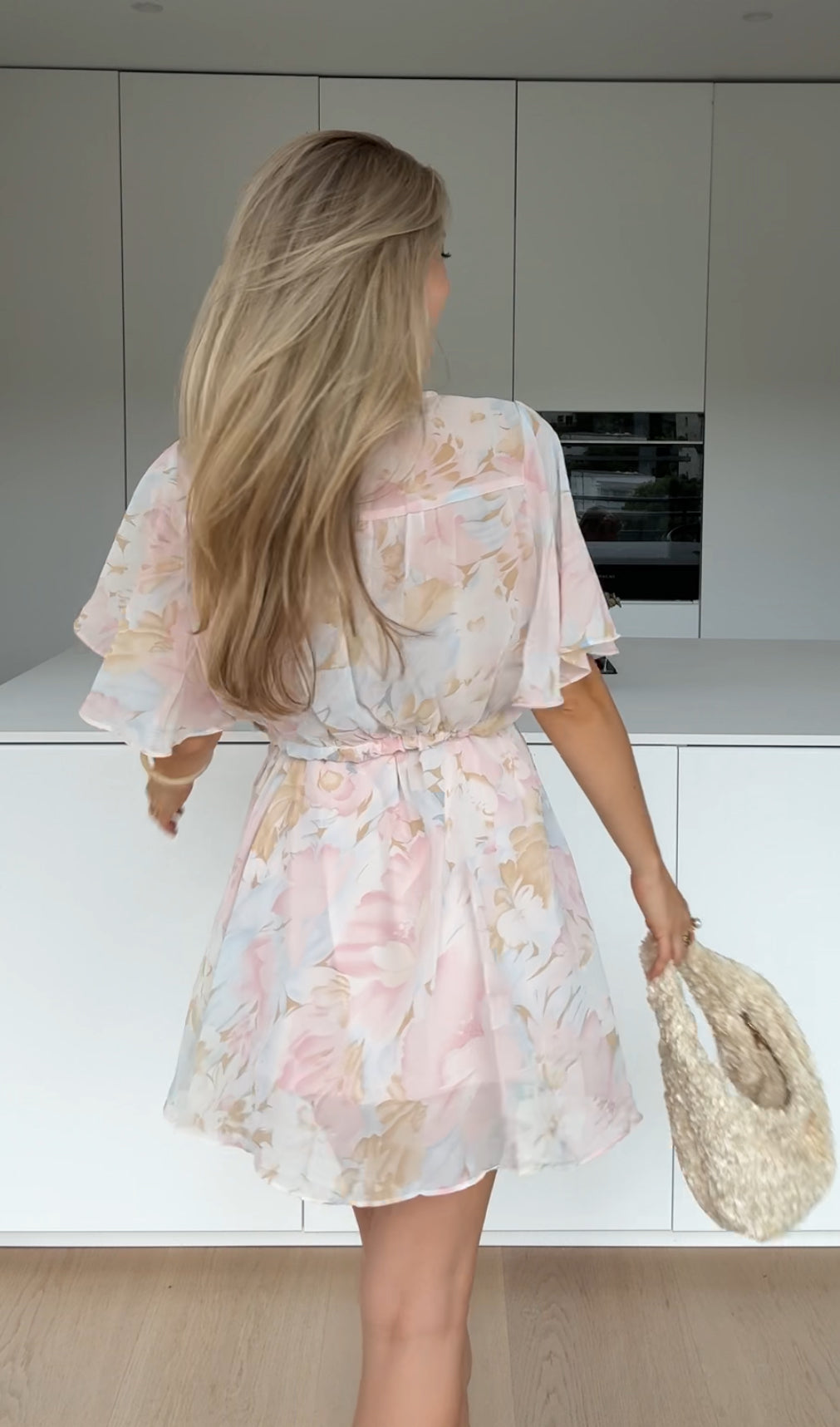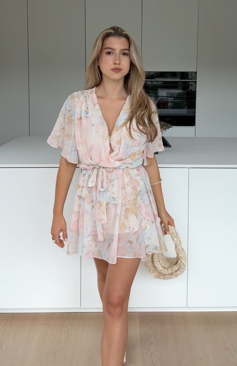 ARTIKELDETALJER: Klänning med blommor i blommönster.