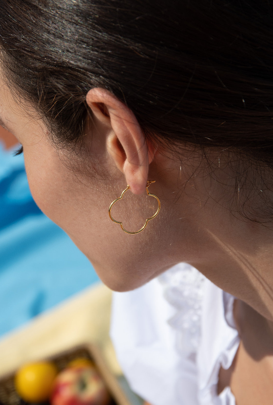 DAISY är blomformade örhängen i guld i cirkel. En minimalistisk detalj för att ge dig ett tidlöst och modernt utseende.