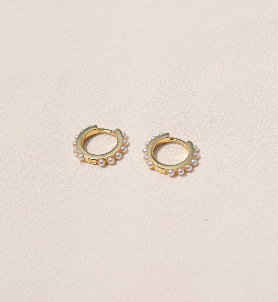 SUE är ett par örhängen med cirklar av guldpärlor. Cirkeln är prydd med sötvattenspärlor. Ett minimalistiskt stycke för att ge dig en tidlös look. Dessa guldiga cirkelörhängen är vackra, lätta och enkla att bära.