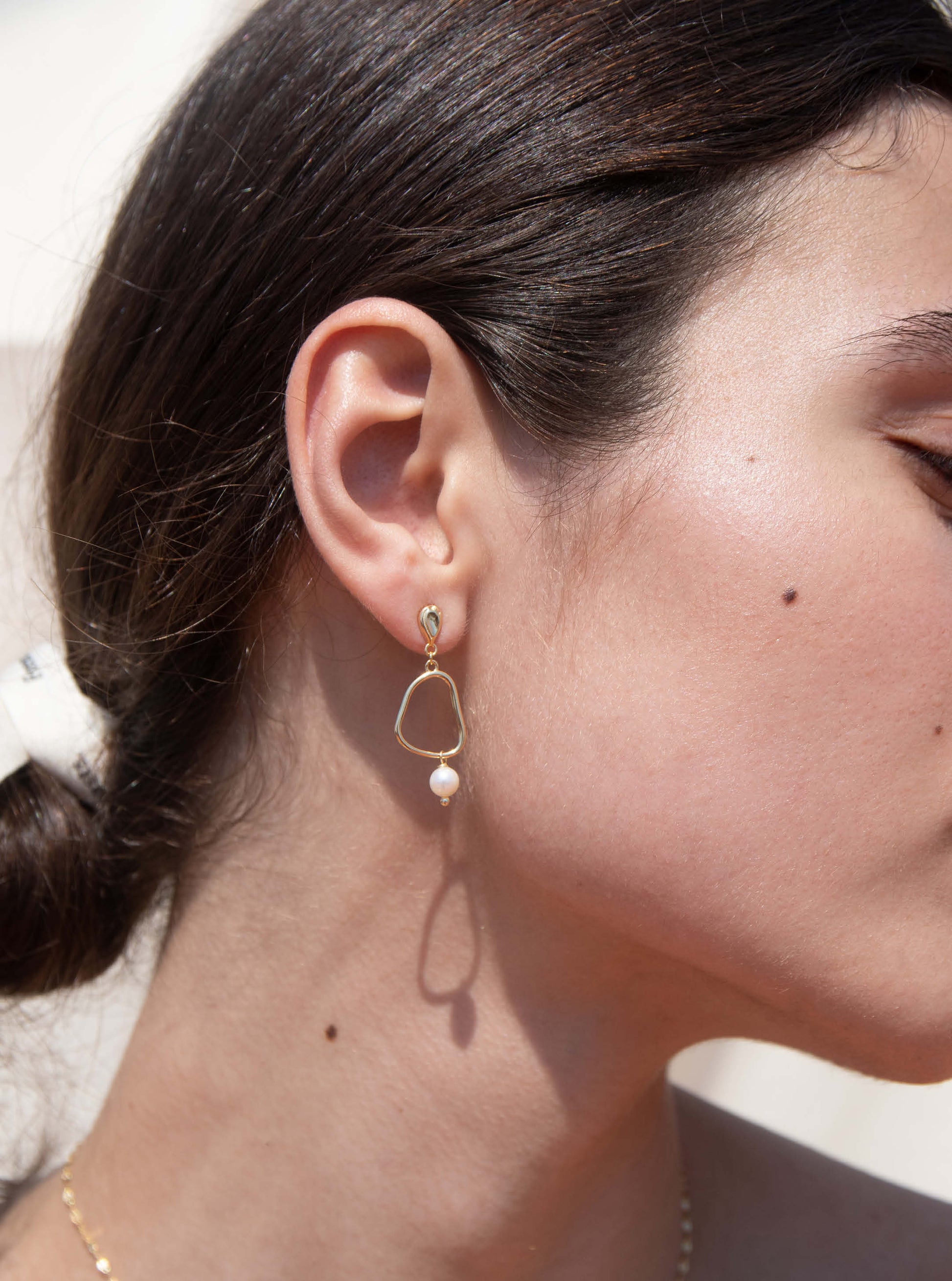 Örhängen med geometrisk fot av pärla