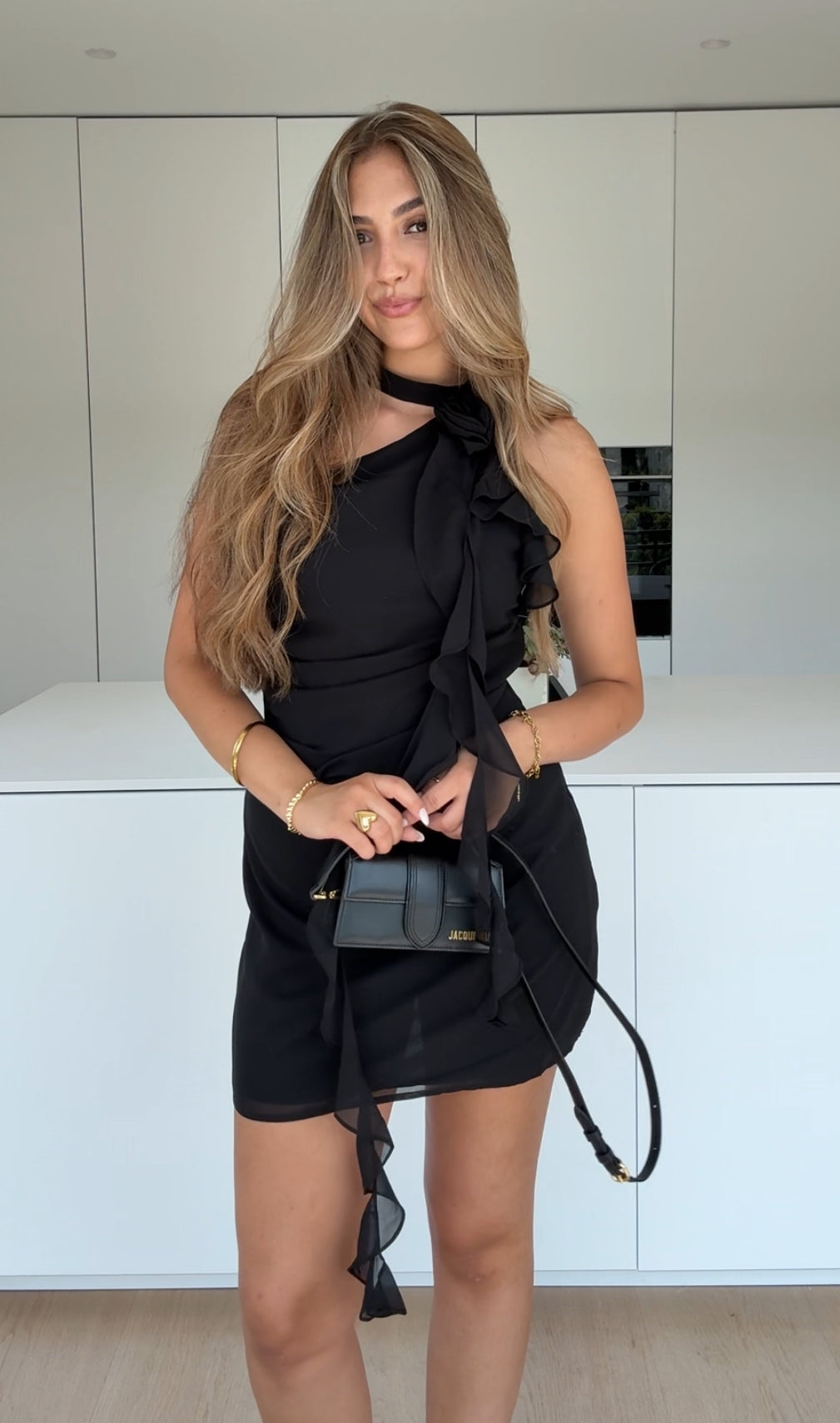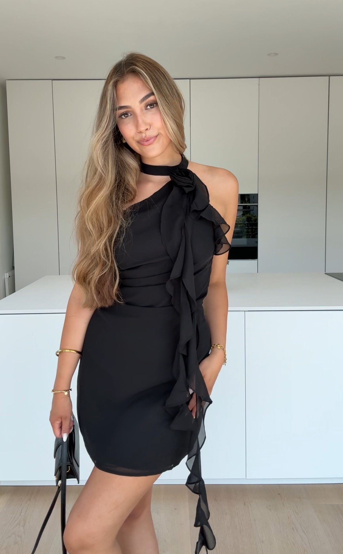 ARTIKELDETAILJER: den passar mindre! Vänligen välj en större storlek. Klänning med volanger och rosdetalj, sidodragkedja