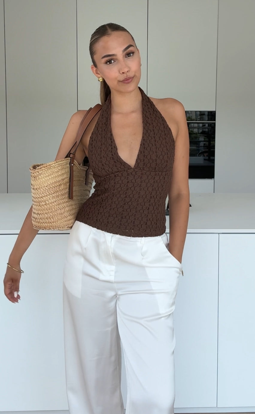 TOP NECKHOLDER FLORAL FÄRG BRUN