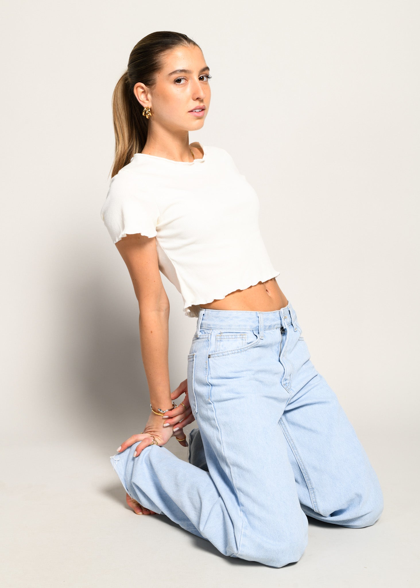 PRODUKTDETALJER: vit basic skjorta med vågig fåll